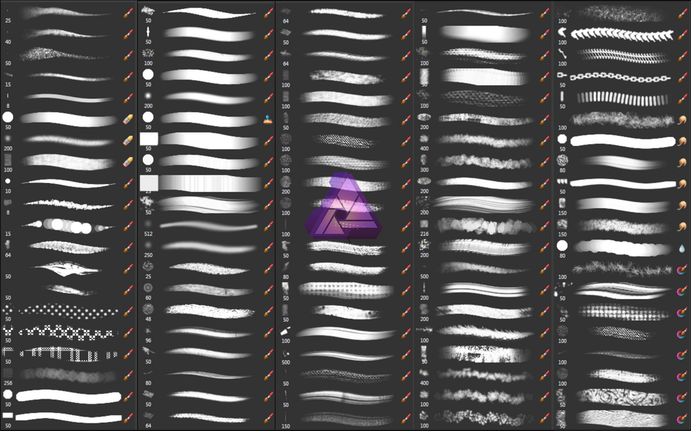 Note: You can use this brush pack as raster brush with Affinity Designer